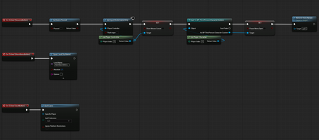This effect went through many iterations. The first was from following this tutorial. I then placed it into my level so that I could see a more accurate size. I felt this size was too large for playing when the player picked up an item. I also created an easier way to see the effect for testing purposes. This was done by having the effect play when a button was pressed. After a while of searching for a way to lower the effect I found that the node that controlled the spawning of the effect with the button was what was causing the effect to spawn too high. After changing this the effect spawned where it should have. It was around this time that I decided that I could use the effect for the death of an enemy instead of when an item was picked up. I focused my efforts on making it more believable for the enemy's death. This meant that the effect area needed to be larger so make it more visible. I also fixed the colors with the effect because originally the effect had a black ring at the start and then white bursts out of the ring. Eventually after playing around with different sizes and colors I settled on the effect I have now.