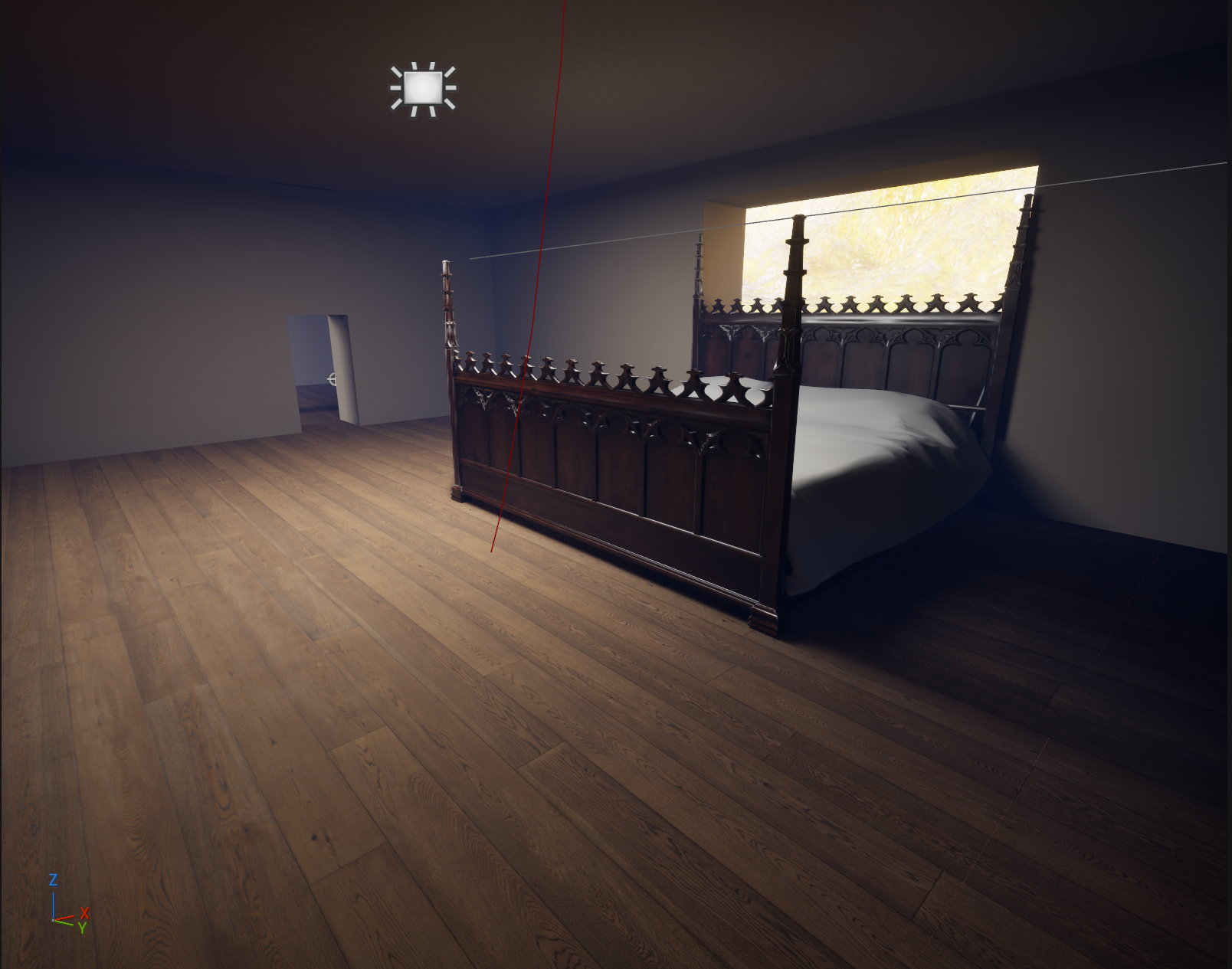 I decided that I wanted the lights to have a cool tone so I changed the color to have a slight blue tint. I did this because I didn't want the house to feel too safe or familiar to the player. Using the cool tones help to make the house feel more foreign. I also wanted it to feel like the game took place later in the evening. I changed the intensity of the directional light that acted as the sun for the level so that the level was darker similarly to how it would be in real life.