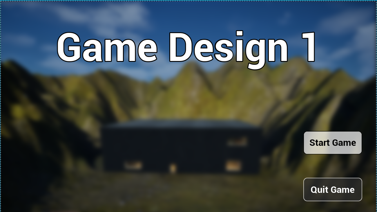 I decided to redo the main menu of my game because I did not like how the original main menu looked and felt compared to the rest of my game. I decided to have the main menu be a blurred image of the house and mountains with two buttons on the bottom right side of the screen. The top button is the start button which starts the game. The bottom button is a quit button which allows the player to exit the game. I decided on the blurred image because I liked the way the house looked nestled at the base of the mountains. I liked that it drew attention to the house and its remote location. I added the blur effect because I felt the image by itself looked too buys with the buttons also on screen.